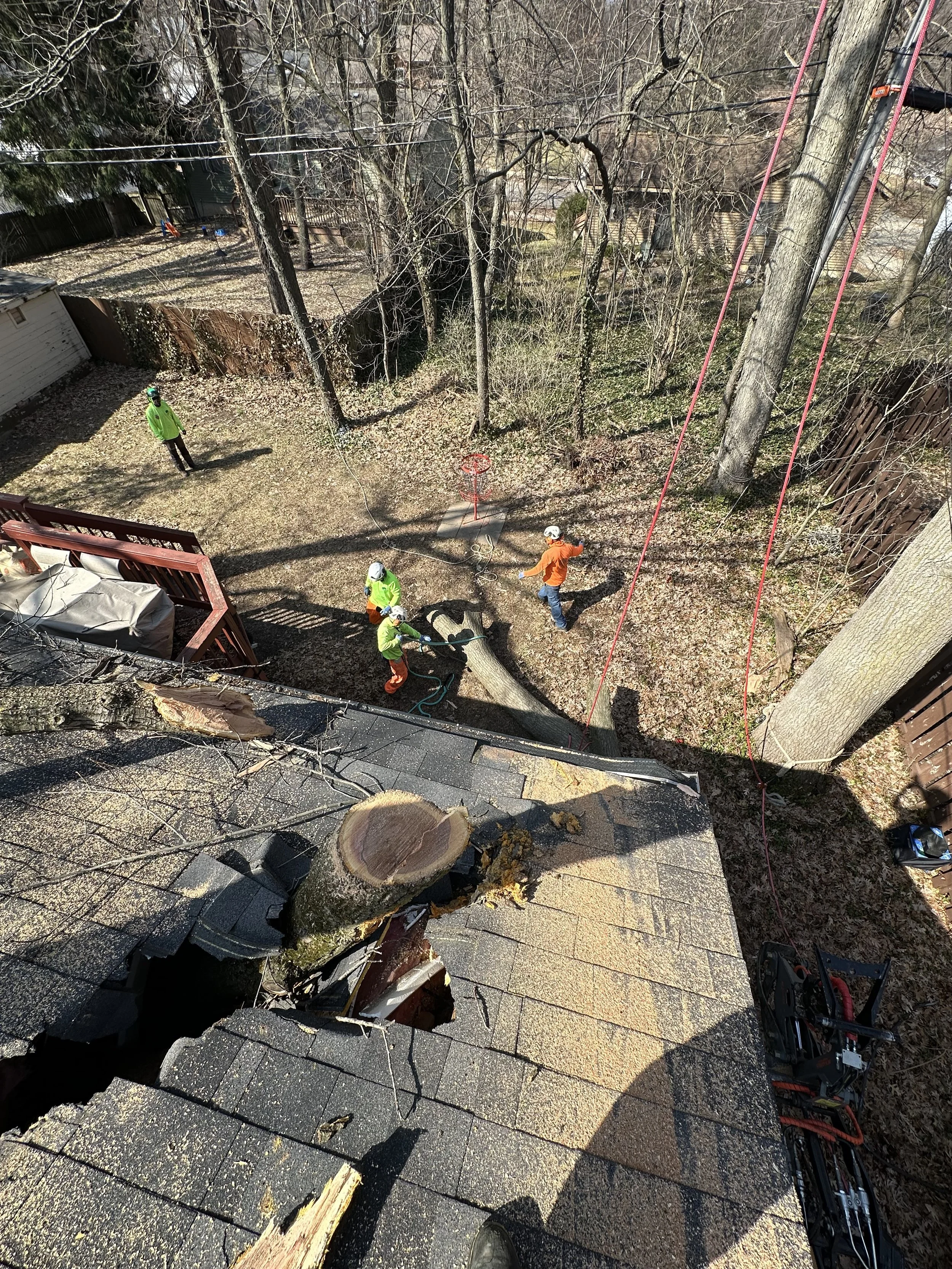 Tree on your home, roof, or occupied structure — immediate structural risk